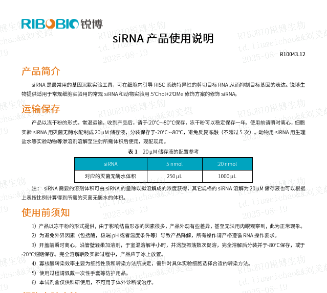 重要提示:常规siRNA设计定制,碱基数19个默认加悬垂,大于19个碱基需添加备注(是否加悬垂(dTdT));化学修饰siRNA需添加备注修饰位置(3端或5端,正义链或反义链)。