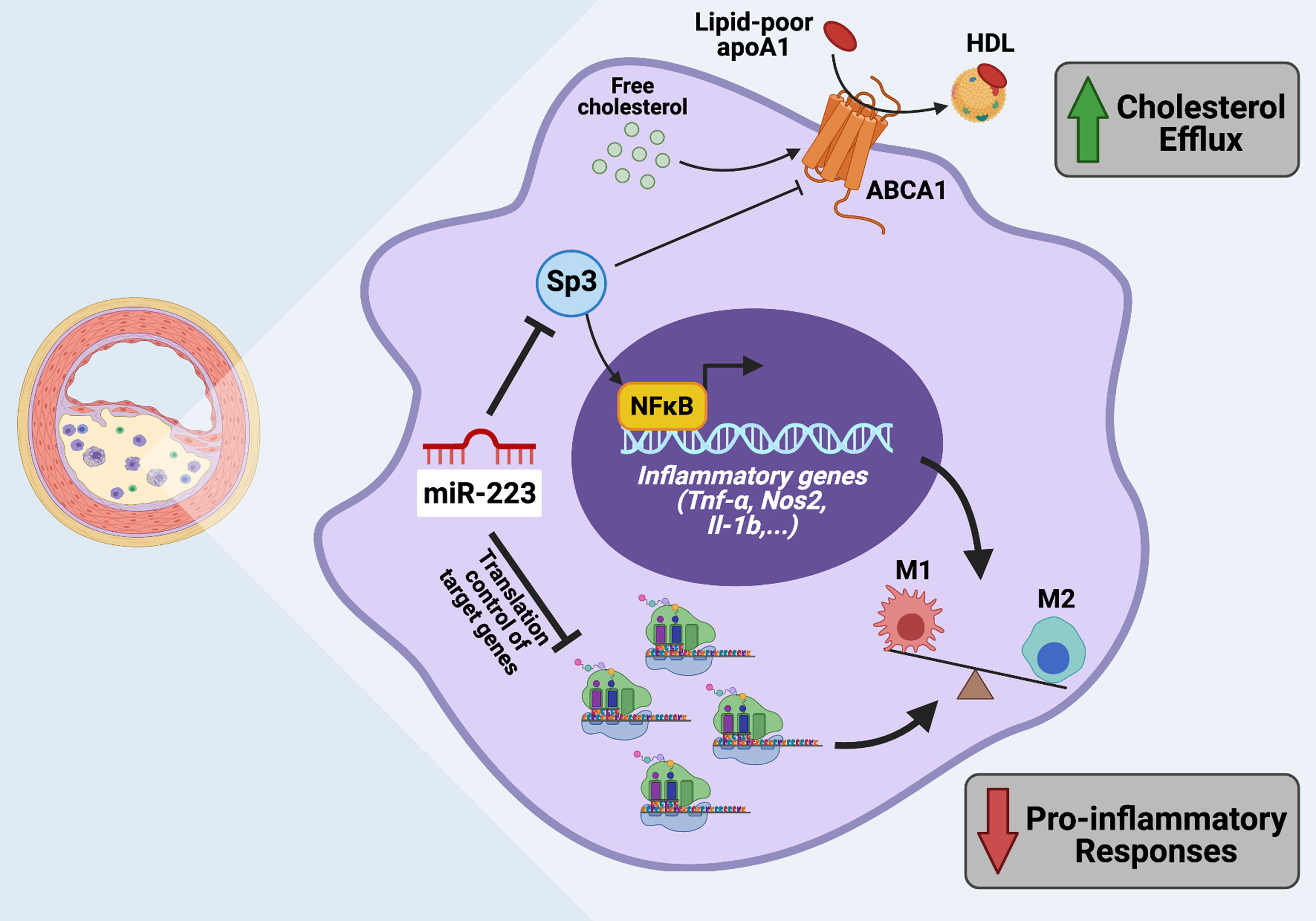 Fig2. miR-223对巨噬细胞中的促进动脉粥样硬化基因进行翻译控制的模型图